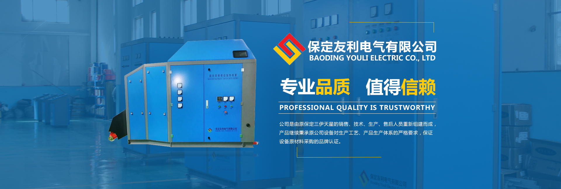 是一家集開發(fā)、生產、應用于一體的高科技現代化企業(yè)。充分滿足鋼管縫焊、金屬熱處理、金屬熔煉、熔焊等各種感應加熱工藝要求,成為電線電纜、熱帶鋼鍍鋅、熱軋、冷軋等生產線的主要電控設備。